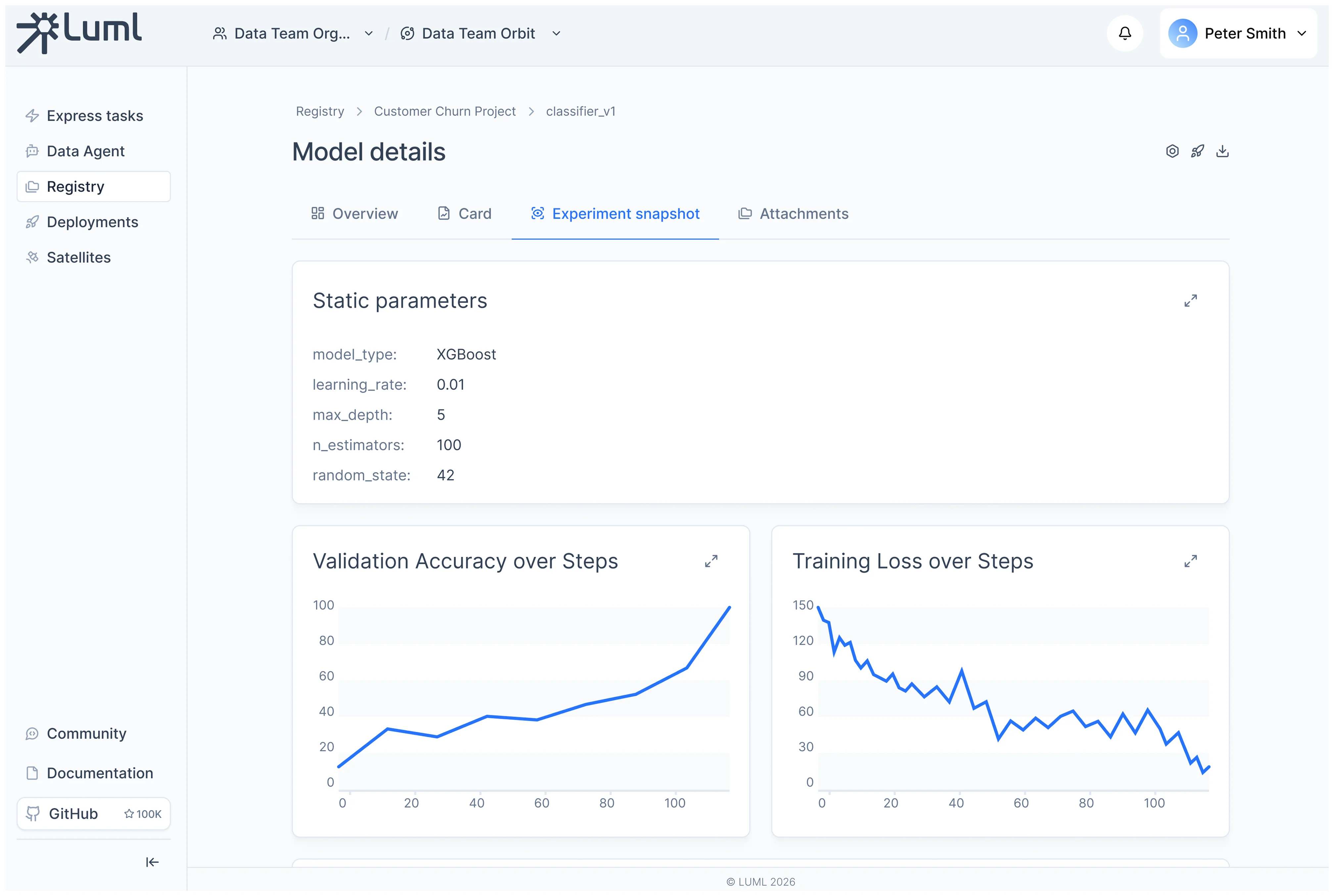 Experiment tracking for both ML and LLM workloads, an artifact registry, one-click deployments to your own infrastructure, and production monitoring (coming soon). One platform instead of stitching together separate tools.